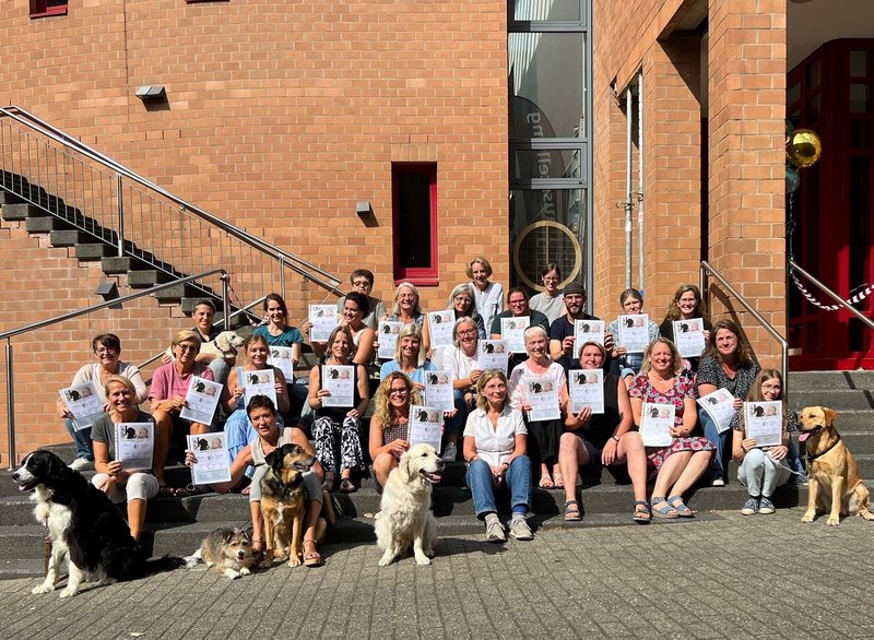 Im Spätsommer diesen Jahres fand die nun schon 6. Schulung im Rhein-Erft-Kreis statt. Wir gratulieren allen neuen Mensch-Hunde-Teams herzlich zur bestandenen Prüfung. Wir freuen uns, dass ihr euch für unseren Hundebesuchsdienst engagieren möchtet und wünschen tolle Einsätze.
